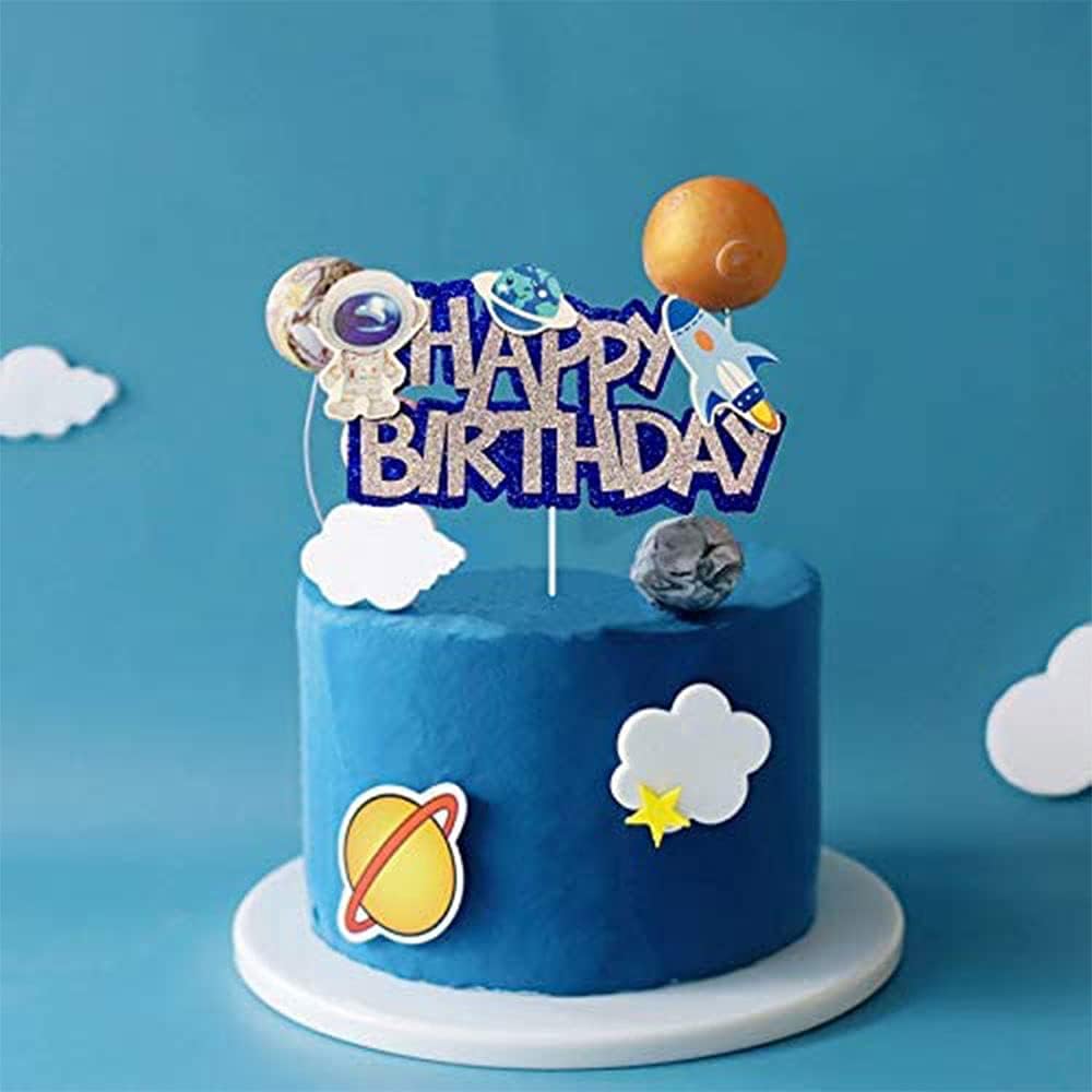 1 Set Astronaut Space Planet Theme Happy Birthday Cake Topper For Kids Birthday Decoration Shopee Singapore